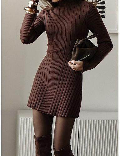 Per donna Abito maglione Elegante Casual Morbido Colore Puro A Coste Girocollo Lavorato a maglia Manica Lunga Top lunghi Maglia All'aperto Quotidiano Weekend Nero Vino Autunno Inverno