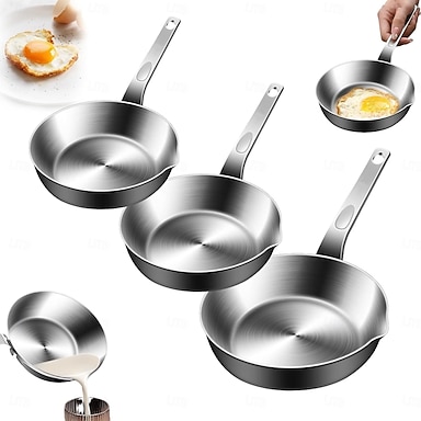 Mini padella per uova in acciaio inox 316 con beccuccio, piccola padella per frittate per burro e salse, compatibile con fornelli a gas e a induzione, solo lavaggio a mano