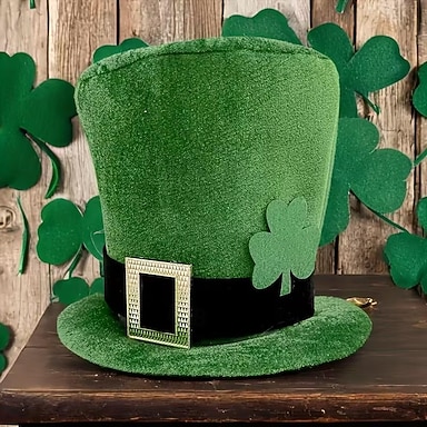 cappellini per la festa di San Patrizio con motivo a trifoglio, verdi &cappelli da festival usa e getta in poliestere nero, senza piume, perfetti per feste al chiuso, foto,