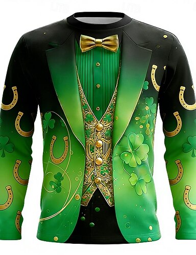 Maglietta da uomo per il giorno di San Patrick a maniche lunghe Maglietta trifoglio Finto frac Divertente Verde Oro Tee Abbigliamento per Festa S M L XL XXL XXXL