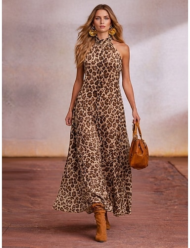 Per donna Abito Midi Vestito Estivo Abito a trapezio Vestito all'americana Abito senza schienale Vacanza Festa Casual All'aperto Spiaggia Festa serale Vestibilità comoda Ombre Grafico Leopardo Senza