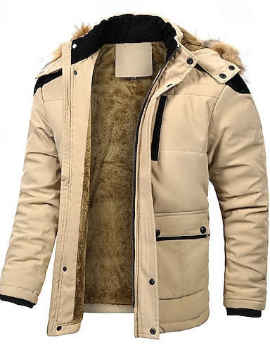 Per uomo Cappotto Invernale Giacca in Pile Parka Tasca Pile Poliestere Vacanza Abbigliamento quotidiano Data Regolare Moda Casual Confortevole Calore Termico Autunno Inverno Colore Solido / Tinta