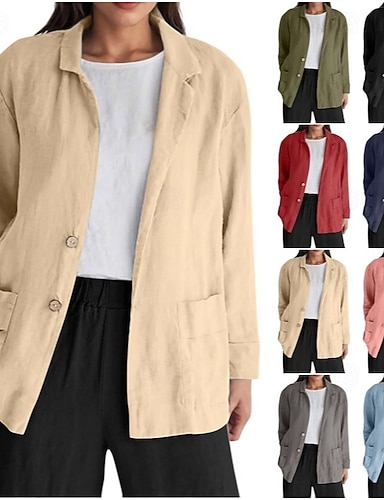 giacca da donna in cotone e lino casual comoda traspirante bottoni elegante quotidiano semplice retrò tinta unita casual regolare revers a lancia vestibilità ampia manica lunga capospalla nero verde