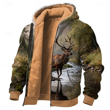 Per uomo Cervo Pile Felpa con Cappuccio Giacca di pelle Felpa Classico Da caccia Manica Lunga Girocollo All'aperto Campeggio Marrone Con zip Autunno Inverno progettista S M L XL 2XL 3XL