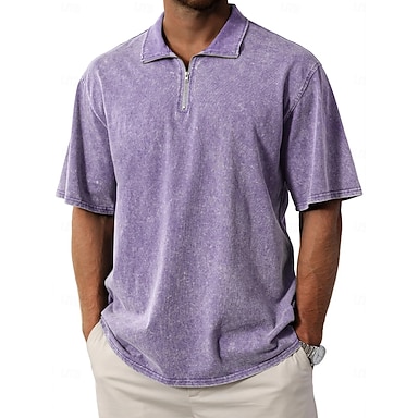 Per uomo Polo con zip Maglia da golf Casuale Ferie Con cerniera Bavero Manica Corta Moda Essenziale Semplice Stile Vintage Zip a un quarto Estate Primavera Primavera & Estate Vestibilità regolare Blu
