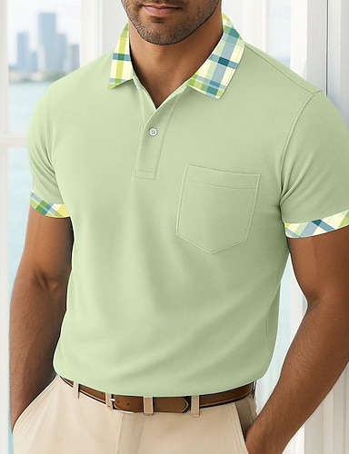 Per uomo Maglia da golf Polo Piqué Casuale Affari Classico Manica Corta Moda Essenziale Tinta unica Plaid Bottoni Estate Primavera Primavera & Autunno Vestibilità regolare Bianco Vino Blu marino Verde