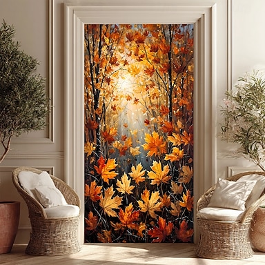 Halloween Poster Copertura della porta Banner per esterni Paesaggio autunnale Carino 3D Da serata Dormitorio Stanza per adolescenti Dormitorio universitario Ragazzi Man Cave Frat Bedroom Sfondi di