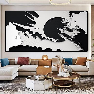 dipinto a olio bianco nero fatto a mano dipinto a mano dipinto astratto orizzontale dipinto 3d pittura texture decorazioni di halloween contemporanea moderna tela arrotolata (senza cornice)