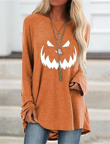 Per donna Mini Abito Abito Felpa Vestito Casual Moda Moderno All'aperto Halloween Quotidiano Vestibilità regolare Zucca Manica Lunga Girocollo Blu marino Arancione Grigio Autunno Inverno
