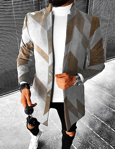 Per uomo Geometria Cappotto Invernale Cappotto Caldo Confortevole Traspirante Moda Streetwear Affari Lavoro Abbigliamento da lavoro Uscire Tasca Stampato Autunno & Inverno Collo ripiegato Manica Lunga