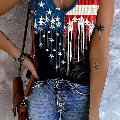 Giorno dell'Indipendenza Anniversario Americano Patriottico Pantaloni Capri da Donna Leggings Vacanza Hawaiian Capribelli Vita MediaPantaloniGrafica Bandiera Nazionale Comfort Elasticizzati Vacanza