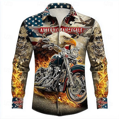 Camicia da Uomo Aquila Bandiera Americana per il Giorno dell'Indipendenza Camicia Estiva Camicia con Bottoni Manica Corta Hawaiian Moda Casual Outdoor Casual Quotidiana Primavera e Estate