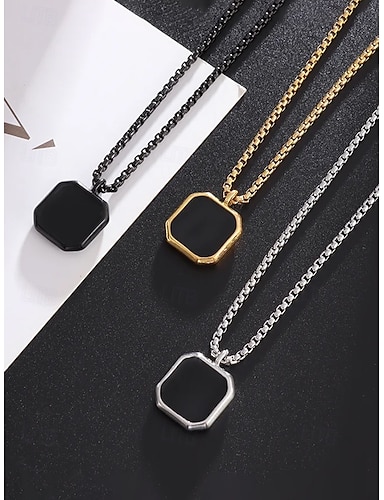 collana da uomo con ciondolo quadrato nero in acciaio inossidabile – gioielli con catena a maglie geometriche minimaliste in oro, argento e nero, accessorio alla moda per l'uso quotidiano, casual da lavoro e per le vacanze
