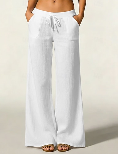 Per donna Pantaloni in cotone e lino Pantaloni Pantaloni Estivi Pantaloni Larghi Vacanza Vintage Moda Lunghezza intera Misura del girovita medio Tinta unica Elastico in vita Asciugatura Rapida
