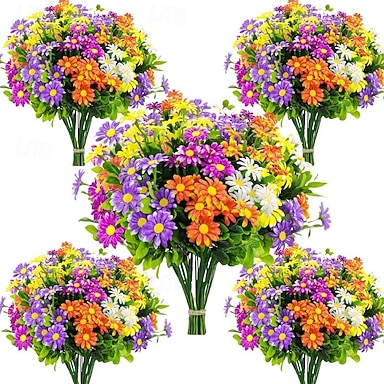 5 pezzi di fiori artificiali da esterno, margherite artificiali in plastica, adatti per decorazioni esterne della casa, perfetti per esposizioni sospese, decorazioni per matrimoni e fidanzamenti,
