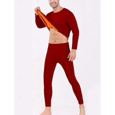 Per uomo Biancheria intima termica Pigiami Set Termico 2 pezzi Liscio Caldo Di tendenza Informale Interni Giornaliero Da letto Poliestere Vello Comfort Caldo Morbido Girocollo Manica lunga maglietta