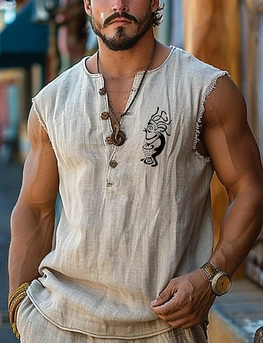 maglietta intima da uomo con personaggio, t-shirt senza maniche, altre stampe, maglietta con scollo a V profondo, vacanza, hawaiana, casual, vacanza al mare, azzurro, nero, bianco, primavera