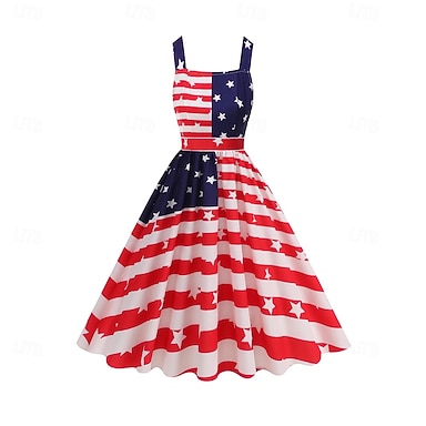 Retrò Vintage Anni '70 Patriotico Pantaloni Pantaloni a gamba larga Hippie Disco Vita alta Stelle Bandiera USA Stile jeans finti Costume Per donna 4 Luglio Festa dell'Indipendenza del Messico