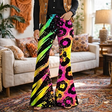 Retrò Vintage Anni '70 Fantastico Pantaloni Pantaloni a gamba larga Hippie Disco Vita alta Psichedelico Stile jeans finti Costume Per donna Carnevale Casual Quotidiano Festival Musicale Festa a tema