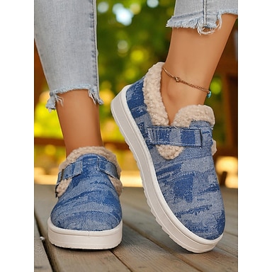 stivaletti da neve da donna foderati in pile di jeans – scarpe invernali calde e casual con cinturino in velcro per viaggi e passeggiate all'aperto