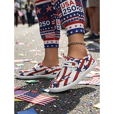Sneakers slip-on da donna per il 250° anniversario degli Stati Uniti: comode scarpe larghe con stelle e strisce per sfilate, celebrazioni del 4 luglio e patriottiche
