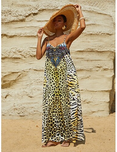 Tuta elegante e fluida in chiffon lavorato a maglia con stampa leopardata sfumata, per le vacanze e le feste