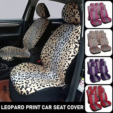 Set completo di coprisedili per auto con stampa leopardata, vestibilità universale, protezione per sedili auto con motivo ghepardo per donne e ragazze, coprisedili anteriori e posteriori con copri