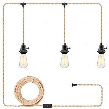 Cavo per lampada a sospensione da 4,5 m con 1 luce e 3 luci, da 7 m, con spina, luci a sospensione con cavo e spina, kit di luci a sospensione in corda di canapa con interruttore a 2 vie, kit di luci