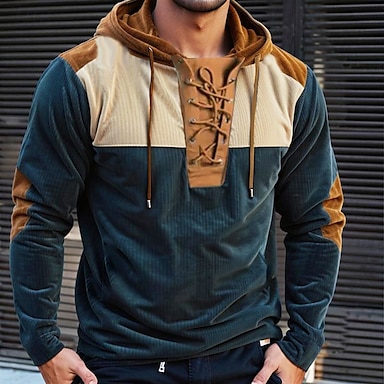 Per uomo Felpa con cappuccio Blu Verde scuro Felpa Con cappuccio Tinta unica Color Block Lacci Stile vintage Con cappuccio Interni Sportivo Velluto a coste Vintage Giornaliero Classico Primavera
