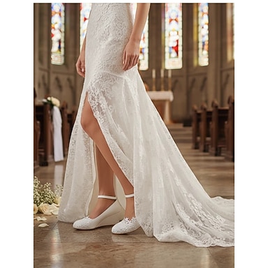 Scarpe da sposa basse da donna in pizzo bianco - eleganti scarpe da matrimonio per cerimonie in giardino