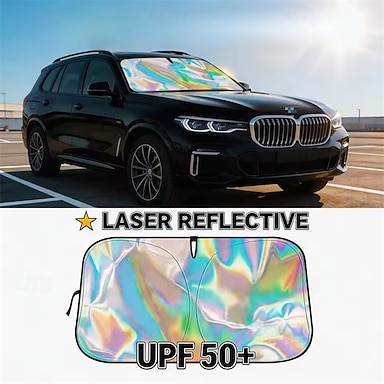 Parasole riflettente laser per parabrezza auto, protezione olografica UPF 50+ per parabrezza, blocca i raggi UV &calore, universale per la maggior parte di auto, SUV e camion, scudo iridescente
