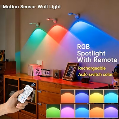 1/3 pezzi telecomando wireless sensore di corpo umano lampada da parete ricaricabile lampada da parete a LED per interni luce spot RGB wireless luce per quadri vetrina artistica illuminazione