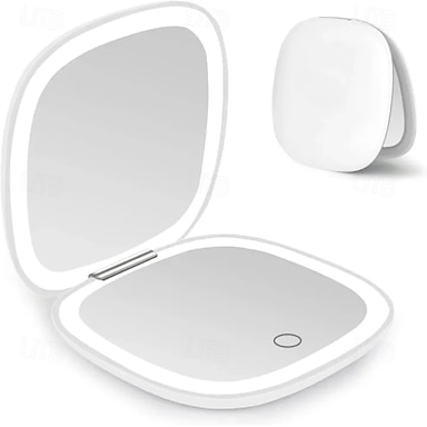 Specchio da viaggio per il trucco con luce a LED, ingranditore 5x 10x, compatto, con ricarica USB, pieghevole, touch screen, luminosità regolabile, mini specchio portatile per viaggi e borsetta