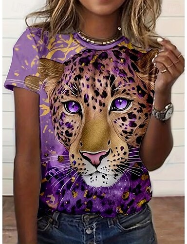 Per donna Maglietta Stampato Grafico Animale Leopardo Vintage Elegante Classico Manica Corta Girocollo Top Regolari Quotidiano Weekend Blu Nero Rosso Viola Fucsia Estate Primavera