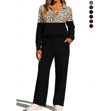 Per donna Maglia Tuta da Ginnastica Pantaloni da Tuta Coulisse Tasca Leopardo Giacca e Pantaloni da Tuta Set di Abbigliamento Sportivo Loungewear Estate Primavera Autunno Inverno Rosso marrone Nero