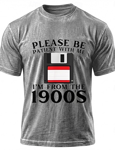 T-shirt da uomo in misto cotone lavato, per favore sii paziente con me, sono degli anni '90, grafica floppy disk retrò vintage, maglietta grigia, abbigliamento m l xl xxl xxxl