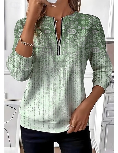 Per donna Camicia Maglietta Cerniera Stampato Floreale Grafico Animale Moda Elegante Classico Manica Lunga Girocollo Top Regolari Quotidiano Sportivo Weekend Arcobaleno Estate Primavera Autunno