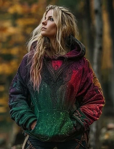 Per donna Felpa Pullover Felpe con cappuccio Stampato Grafico Geometrico Moda Casual Manica Lunga Girocollo Top Regolari Casuale Streetwear Abbigliamento Quotidiano Blu Rosso Autunno Inverno