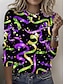 T Shirt da Donna Carnival Graphic Moda Casual Maniche Lunghe Collo Tondo Tops Regolari Daily Weekend Stampa Viola Estate Primavera Autunno
