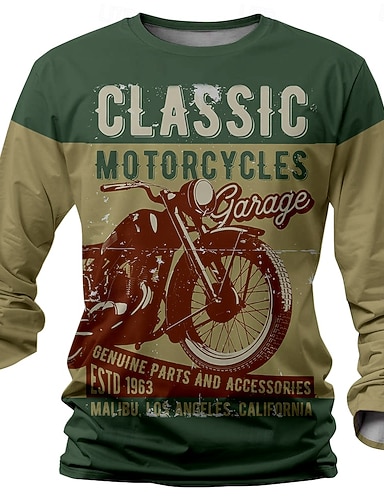 Per uomo Moto Maglietta Maglia Henley Manica Lunga maglietta Stampa 3D Girocollo Camicia Designer Retrò Vintage Streetwear Casuale Cachi Estate Primavera Autunno Abbigliamento S M L XL 2XL 3XL