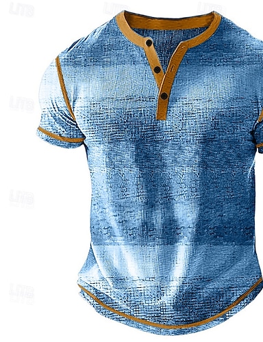 Per uomo Astratto Maglia Henley Maglietta a nido d'ape Manica Lunga Vintage Quotidiano Retrò Vintage Sport all'Aperto Casuale Ferie Primavera & Estate Tutte le stagioni Blu Giallo Verde Rosso Grigio