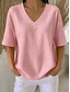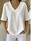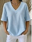 Per donna Maglietta Top Henley Top a maglia waffle Tinta unica Elegante Casual Manica Corta Scollo a V Top Regolari Quotidiano Blu Nero Bianco Arancione Verde Estate Primavera Autunno