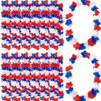 30 fiori artificiali patriottici - ghirlande hawaiane rosse, bianche e blu con motivo di ananas e scudo, decorazioni per il giorno dell'indipendenza in memoria del 4 luglio, regali all'ingrosso per