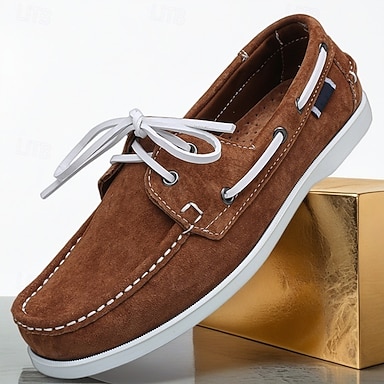 Mocassini stringati da uomo in camoscio marrone: scarpe casual eleganti, perfette per tutti i giorni, l'ufficio e per un look casual all'aperto.