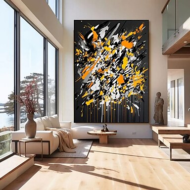 dipinto a olio fatto a mano jackson pollock vibrante espressionismo astratto tela moderno schizzi di vernice arte murale colorato gocciolamento design contemporaneo decorazione per la casa