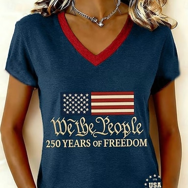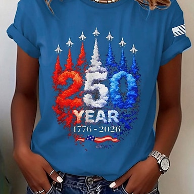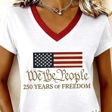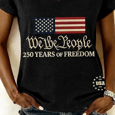 Blusa Patriottica Giorno dell'Indipendenza per Donne Simil Lino Traspirante Leggero Tops Estivi Grafica Bandiera Vintage Casuale Maniche 3/4 Collo Giro Regolare Tops Stampa Giornale Bianco Estate