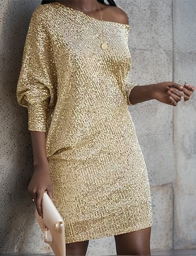 Per donna Mini Abito Abito Bianco Abito nero Abito con Paillettes Elegante Moda Classico Quotidiano All'aperto Feste Vestibilità regolare Semplice Manica Lunga Senza Spalle Nero Bianco Rosa Rosso