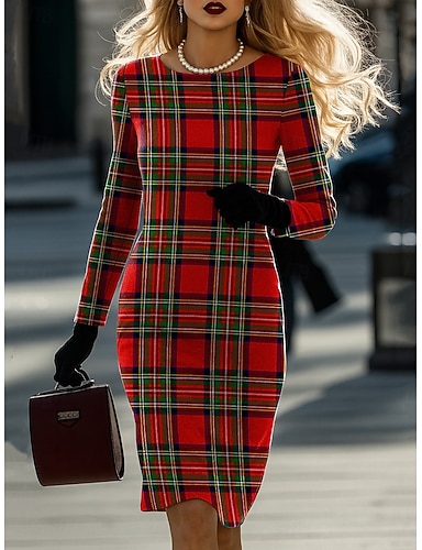 Per donna Mini Abito Abito a trapezio Abiti semi formali Ufficio Vestibilità regolare Plaid Semplice Manica Lunga Girocollo Nero Vino Rosso Estate Autunno