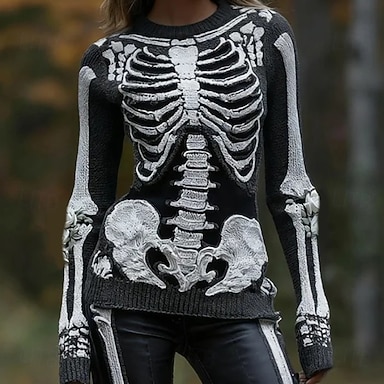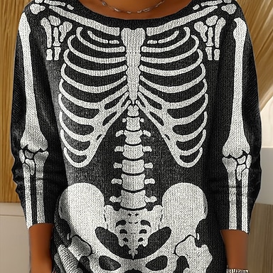 Per donna Mini Abito Abito in maglia Vacanza Casual Boho Quotidiano Ferie Uscire Taglia piccola Grafico Teschio Manica Lunga Girocollo Nero Bianco Arancione Autunno Inverno
