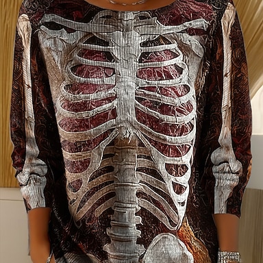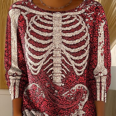 Per donna Mini Abito Abito in maglia Vacanza Casual Boho Quotidiano Ferie Uscire Taglia piccola Grafico Teschio Manica Lunga Girocollo Nero Bianco Rosso Arancione Autunno Inverno